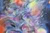 Dieses Kunstwerk sprüht vor kosmischer Energie und verbindet gekonnt lebendige Rot-, Blau- und Lilatöne. Es fesselt die Fantasie des Betrachters mit dynamischen, wirbelnden Bewegungen, die die Geheimnisse des Universums heraufbeschwören. Der Hintergrund geht sanft von einem feurigen Rot zu einem kühlen Blau über und suggeriert ein harmonisches Gleichgewicht zwischen Wärme und Gelassenheit. Fein geschichtete Pinselstriche erzeugen Tiefe und Bewegung und ahmen den himmlischen Tanz der Galaxien nach. Weiße Sprenkel sind wie ferne Sterne über die Leinwand verteilt und verleihen eine Textur, die das kosmische Thema verstärkt. Die Präsenz von hellgrünen und gelben Akzenten verleiht eine ätherische, fast überirdische Qualität. Eine leuchtende Kugel in der unteren rechten Ecke verankert das Werk und symbolisiert einen Himmelskörper oder eine ferne Sonne. Dieses Meisterwerk lädt zur Kontemplation ein und entführt das Publikum in ein abstraktes Reich, in dem die Geheimnisse des Weltraums künstlerisch eingefangen sind. Es besticht durch sein mutiges Farbschema sowie ein überzeugendes Gefühl von Bewegung und Tiefe.