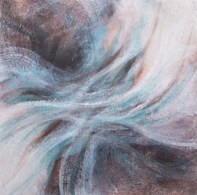 „The intertwining of destinies“ ist ein abstraktes Gemälde, das voller philosophischer Bedeutung und Bildsprache ist. Das Ineinanderfließen von geschwungenen Linien und strukturierten Pinselstrichen drückt die Idee von Begegnungen, Abschieden und der Vernetzung der Schicksale und Wege der Menschen aus. Die Hauptfarbpalette besteht aus Grautönen, Türkis, Beige, abgetönt mit sanftem Weiß. Diese Wahl erzeugt ein Gefühl von Transparenz, Leichtigkeit und feinen Verbindungen, die über das Sichtbare hinausgehen.
