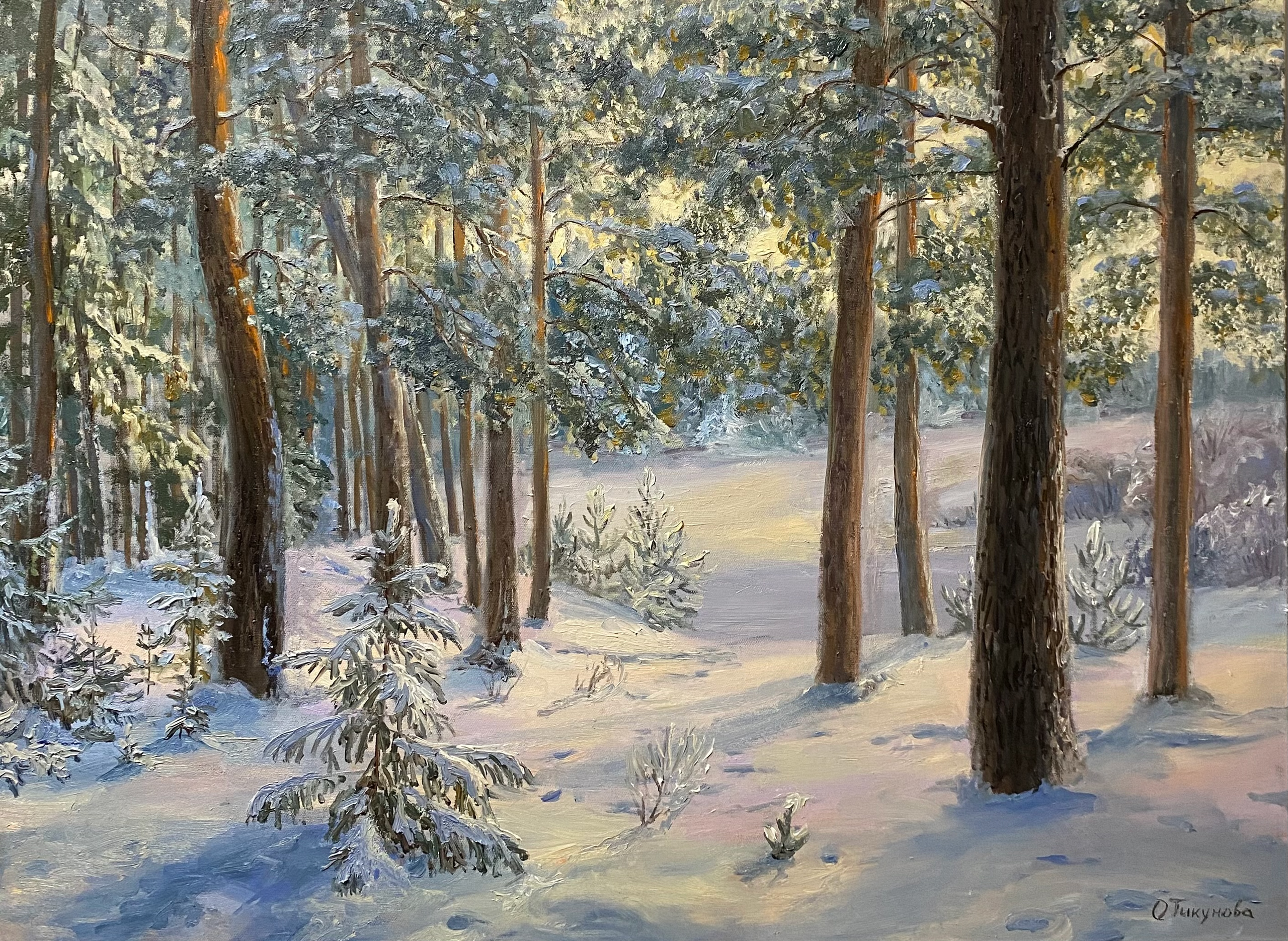 Картина зимний пейзаж "Зимний лес" написана масляными красками на холсте, натянутом на подрамник.