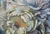 Ich wollte dieses Bild in kühlen Farbtönen mit Elementen der dekorativen Malerei malen. Zwei üppige graublaue Pfingstrosen im Stil des abstrakten Realismus sind besonders und interessant dank der Ausführungstechnik. Sie sind in Öl gemalt, und einige Akzente wollte ich mit skulpturaler Malerei, Vergoldung und Bergkristall hervorheben. Der Frische- und Kristalleffekt wird gerade durch diese Elemente im Bild erreicht, was ihm eine besondere Ausstrahlung verleiht.