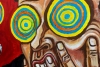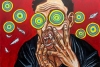 Взгляд, застланный имитирующими яркими образами кругов, не дающими взглянуть на подлинную картину мира. Материалы: холст на фанере, акрил.