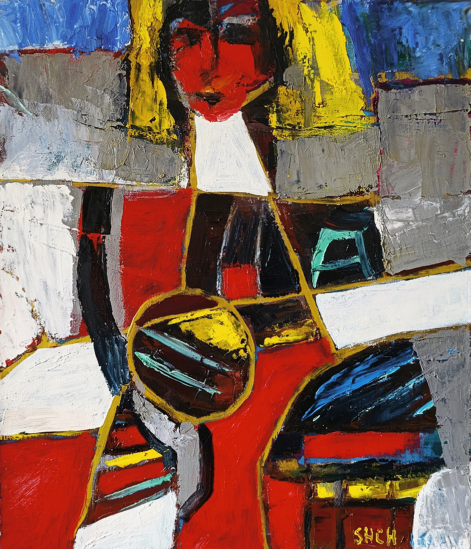 На картине в современном условном стиле написано изображение девушки-спортсменки держащей небольшой мяч. Фигура читается, но как-бы намёком, предельно условно. Несмотря на предельно условную манеру изображения, ощущается энергия молодости.Динамичное равновесие активных цветовых плоскостей создаёт заряд бодрости и радости.