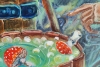 Im Inneren der Hütte befinden sich zahlreiche Alltagsgegenstände: antikes Geschirr, hölzerne Regale mit Kräutern und Zaubertränken, brodelnde Kessel. Auf dem Feuer kochen Fliegenpilze – ein wichtiges Symbol in der slawischen Mythologie, das mit Magie und Wandel verbunden ist. Baba Jaga ist mit ihrem Handwerk beschäftigt – sie bereitet etwas zu, wirkt Zauber, und der Betrachter wird selbst zum Teil dieses Prozesses. Die Atmosphäre des Gemäldes ist dynamisch: Das Märchen beginnt gerade erst, und von jedem Gegenstand geht ein Gefühl von Handlung und Erwartung eines Wunders aus.