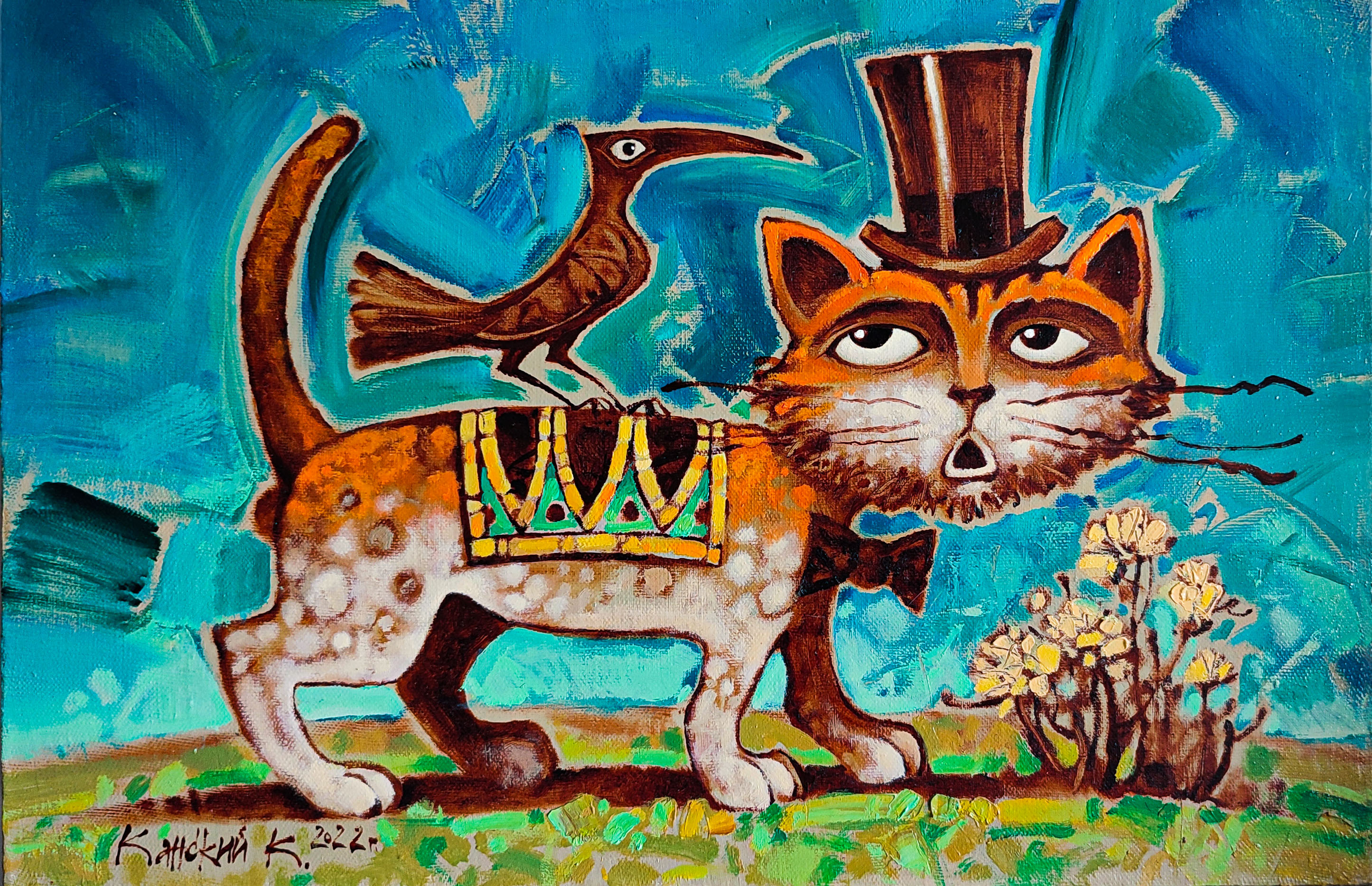 Неожиданная компания, кот не против. Кот имеет некий статус, но для прилитевшей птицы это неважно. Она готова общаться, тем- более ей есть , что рассказать.