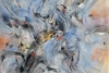 This painting invites a voyage into the inner landscape, depicted as a geological portrait of memory and feeling. Swirling currents of blue, lavender, and pale violet weave through the canvas, while warmer hints of peach and soft coral emerge like buried shards awaiting discovery. The composition reads as an excavation: layers of emotion are revealed and reorganized as the eye travels across the surface, guided by energetic brushstrokes that spike outward from a luminous center. Delicate flecks of color, plus occasional dark accents, create a sense of depth and tension, suggesting that meaning is both found and crafted beneath the surface. The piece balances motion with restraint, offering a contemplative mood amid dynamic gesture. Light seems to move with the forms, giving the work a cinematic, ever-changing quality that invites repeated looking. Suitable for contemporary interiors, it promises to resonate with viewers as they reflect on their own passages, discoveries, and growth. Signed in the lower right by the artist.