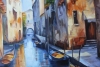 Эта картина — мое погружение в атмосферу волшебного итальянского городка, где время словно замедляется, а воздух напоен теплом и светом. В момент создания этой работы я ощущала легкость и вдохновение, будто сама плыла по тихим каналам, наслаждаясь мягким шелестом воды и нежными оттенками закатного солнца. Каждая деталь наполнена моей тихой радостью и умиротворением.