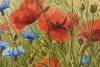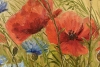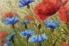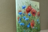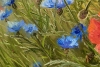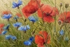The painting with wildflowers "Poppies and Cornflowers" is painted with oil paints on canvas stretched over a stretcher frame.