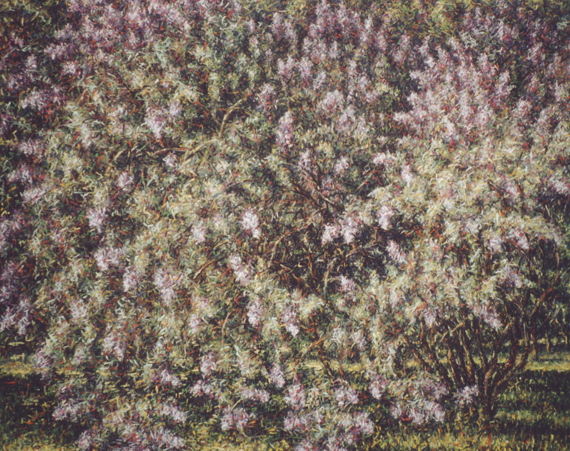 Картон, на котором написана картина, наклеен на оргалит, закреплённый на подрамнике.