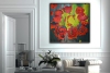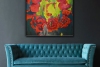 Keywords... large oil painting, abstract painting, perfume Molecule, artist marina venediktova, red flower, living room decor, emerald, turquoise, flowers, red, pink, coral, bright color, painting as a gift