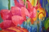 Keywords ... large oil painting, abstract painting, fabulous painting, surreal painting, artist Marina Venediktova, big flowers, emerald, turquoise, orange, yellow, bright color, living room decor, painting as a gift, blue