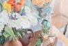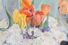 Цветы занимают значительную часть композиции. На картине изображены сразу три букета: букеты из красных тюльпанов с жёлтыми цветами, букет из кремовых роз и букет из жёлтых роз на заднем плане. Каждый букет привносит свою нотку в общее настроение картины, символизируя щедрость и красоту жизни.