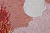 The large moon that takes center stage in the painting draws attention. It symbolizes peace and connection with nature. The soft brushstrokes and textured layers create a sense of liveliness and movement, as if the wind is blowing through the leaves and reflecting in the water.