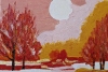 This oil painting on canvas depicts an autumn landscape filled with warmth and harmony. The rich red and orange hues capture the beauty of autumn nature. The trees with their vibrant leaves create a sense of coziness and tranquility, while the pond adds depth and balance to the composition.
