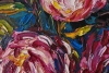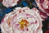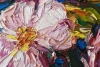 This oil painting on canvas depicts a bouquet of peonies, made in a bright and rich color scheme. The impasto technique is used, thick strokes of paint are applied, which gives the work volume and texture.