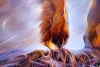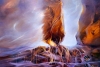 На моей новой картине "Антей" я нарисовала мистический абстрактный мир, вдохновленный произведением Данте "Божественная комедия". Меня заинтересовала структура, философия и мораль девяти кругов. Все круги представляют разные грехи и наказания за них и в каждом есть свои стражи. Мне захотелось изобразить последний, девятый круг и его стража - Антея. Именно этот круг напоминает нам о важности верности и честности в наших отношениях и поступках.