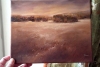 I wanted to convey a state of thoughtful calmness when you are alone with nature. Warm ochre and soft light shades create the feeling of evening light, which diffuses over the field and only gently illuminates the line of trees in the distance.