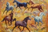 Бегущие по кругу лошади, символизирующие бег времени. Написано в тёплых тонах, пастозно, экспрессивными мазками с использованием мастихина.