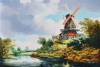 Пейзаж с ветряной мельницей на речном берегу, исполнил Константин Зинченко. Работа написана маслом, на деревянной основе покрытой левкасным грунтом и покрыта лаком.