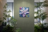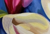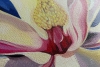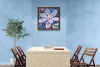 The background of the painting, rendered in deep blue and purple tones, adds depth and mystery, creating a contrast with the bright colors of the flower. This combination of colors evokes a feeling of calm and tranquility, as if you are in a quiet garden where nature reveals its most beautiful aspects.