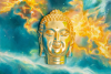 Контраст между вечным, спокойным выражением Будды и динамичной, загадочной космической средой символизирует гармонию внутреннего мира и безграничного пространства вселенной. Картина наполнена глубоким философским смыслом: она говорит о бессмертии духа, поиске внутреннего покоя и связи человека с бесконечным космосом.