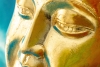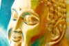 На картине изображена гипсовая фигура головы Будды, установленная на деревянной подставке, окрашенной маслом. Голова Будды выполнена с тщательным вниманием к деталям: лицо излучает спокойствие и сосредоточенность, глаза полуоткрыты в медитативном состоянии, а губы слегка приподняты в улыбке. Гипсовая поверхность окрашена в золотой цвет, который ассоциируется с просветлением, духовной чистотой и благородством.