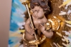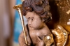 Композиция разделена на две основные зоны: небесное сияние сверху и земное стремление снизу. В верхней части на фоне бушующих сине-серых облаков восседает объемная фигурка путти (херувима), выполненная, судя по всему, из гипса и покрытая сусальным золотом. Купидон держит в руках музыкальный инструмент, являясь источником божественной гармонии. Его фигура окружена ослепительным золотым сиянием, выполненным, вероятно, сусальным золотом, что придаёт ей подлинное сияние.