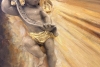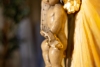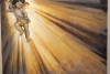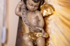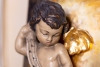 At the center of the composition is a voluminous figure of a cherub, sculpted from plaster. The child, embodying purity and vulnerability, is captured in motion — he seems to float in a stream of golden light emanating from the upper left corner. The oil painting on the wooden panel masterfully emphasizes this light: confident strokes create the effect of radiance piercing the dark, dramatic space of the painting. The light here is not just a physical phenomenon but a symbol of illumination, protection, and faith in the better.