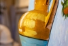 Кувшин, в котором стоят подсолнухи, также выполнен с использованием гипса и потали, что придаёт ему дополнительный объём и рельефность. Его формы и цвета словно вторят подсолнухам, создавая гармоничную композицию. Фон картины – нежно-голубого цвета, что создаёт контраст с тёплыми оттенками цветов и кувшина, позволяя им ещё ярче засиять.