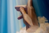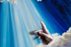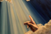 В центре внимания — рука, протянутая из облаков, но вместо жеста, дарующего жизнь, мы видим момент уходящей надежды. Рука, словно растворяющаяся в мягком свете, застыла в поисках контакта, который не происходит. Лучи света, пронзающие пространство, вместо божественного тепла излучают холодную отстранённость. Контраст между освещённой облачной массой и глубокой темнотой справа создаёт ощущение бездны, в которой угасает смысл.
