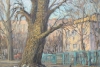 I was walking and saw an ancient huge poplar, and beneath it a puddle with a reflection. While painting, I added life with a local cat hunting crows. Life goes on...