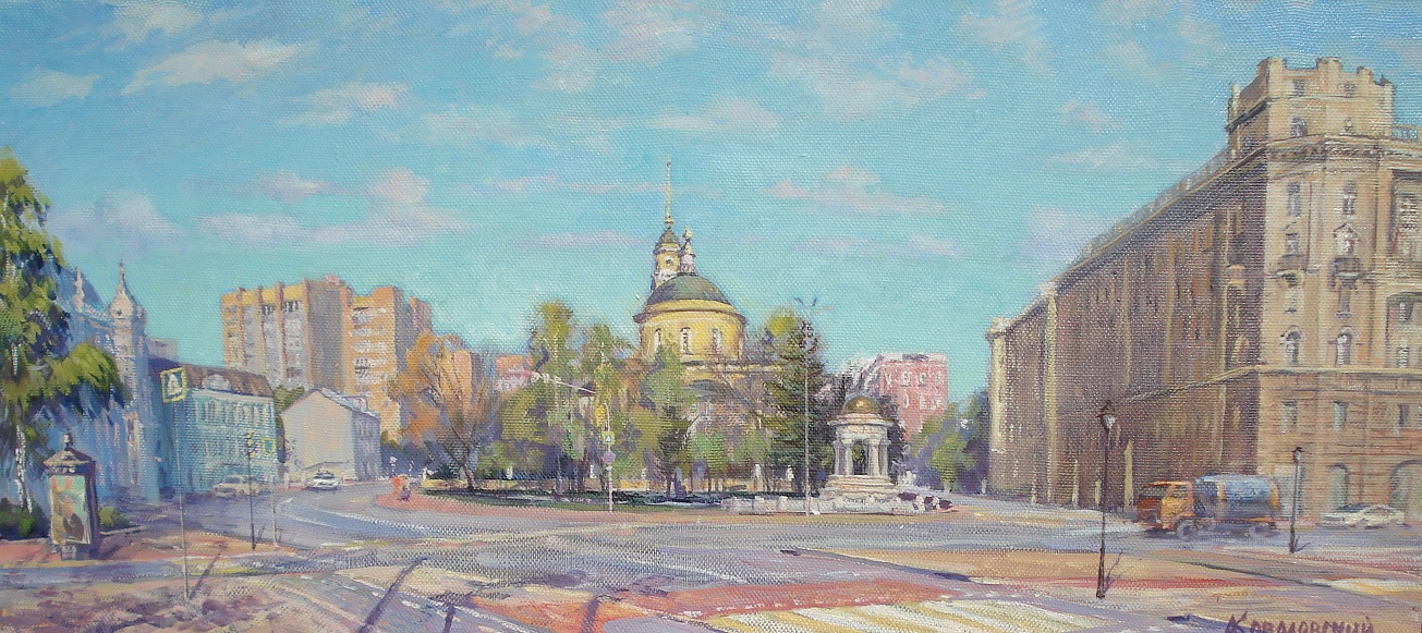 Удивительное место. Рано, пусто, несуетливо, величественно, радостно. Попытался показать широту старой Москвы, её величие и единство. Храм, где сам Пушкин венчался, а рядом патруль гаишников. Но всё органично. С удовольствием делюсь с вами.