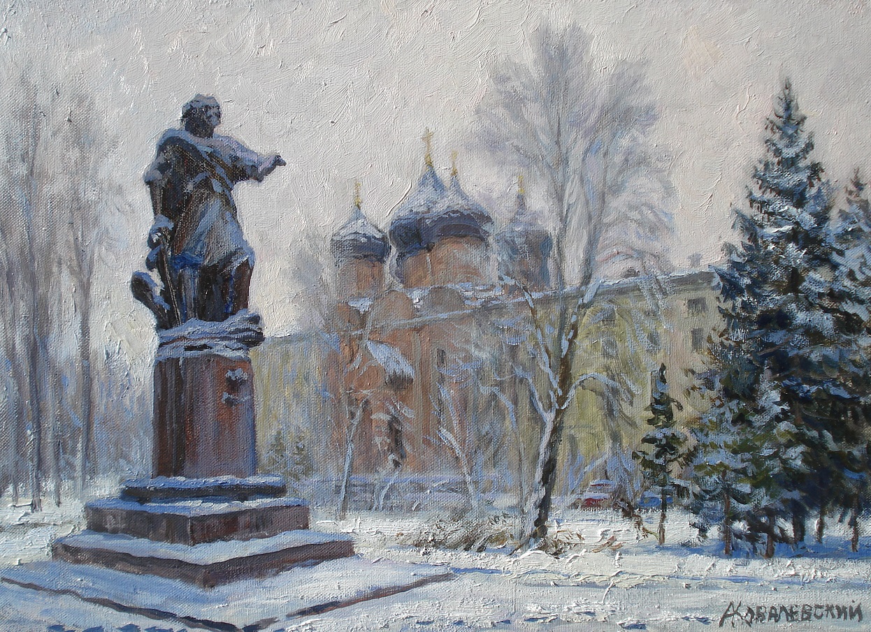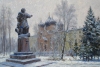 Мы обошли остров. Меня впечатлил величественный жест Петра. Его монументальность, строгость и точность контуров. Я попытался передать жемчужный цвет, сияющее небо, красоту и величие панорамы собора и деревьев.