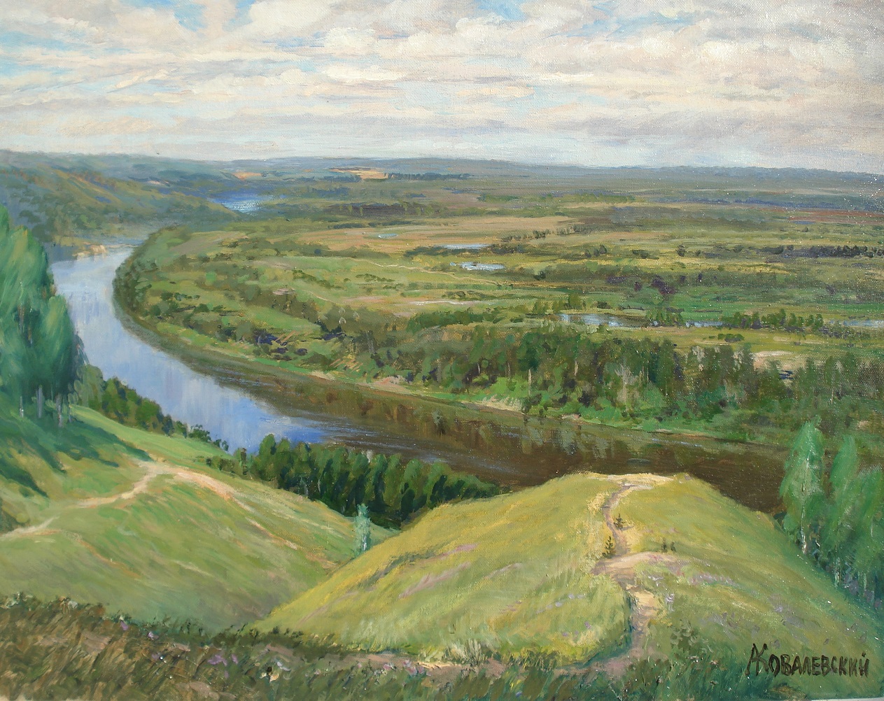 Недалеко от Гороховца есть чудесное место с видом с высоты птичьего полёта — Лысая гора. Написан вид на первозданную, нетронутую людьми Клязьму.