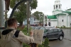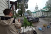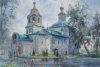В Вологде мы с женой жили в гостинице рядом с храмом. Пошли дожди. С крыльца кафе я писал блестящую мокроту, стараясь передать свет и отражения на здании церкви, блики на асфальте, косые мороси в небе.