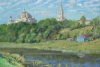 Early morning in Torzhok. The Borisoglebsky Monastery rises above everything. The Tvertsa River flows quietly, reflections are vivid, everything is bathed in the first rays of the sun.