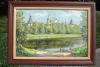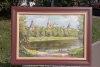 Я писал эту работу около трёх лет. Начал, но монастырь закрыли сеткой на реставрацию, пришлось ждать. Постарался передать иллюзорность и прозрачность вечернего неба, красоту поверхности пруда, сияние собора.