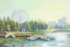 Painted a view of Izmailovsky Park with boats and a Ferris wheel. The time is towards evening; I tried to convey the glow of the sunset light, the sparkle of the water, and the airy monumentality of the wheel.