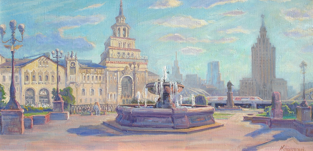 Удивила красота ансамбля архитектуры Казанского вокзала — здания, которое задумывалось как грандиозные ворота между Европой и Азией и стало архитектурным манифестом своей эпохи. В лучах закатного солнца свет играет розовато-оранжевыми оттенками, тени — яркими фиолетово-синими. Я постарался показать связь эпох и гармоничное сочетание разных архитектурных стилей.