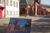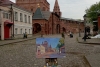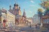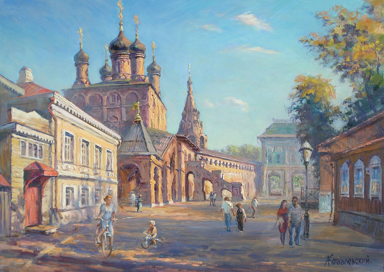 Наступает вечер. Тишина, летнее настроение. Древний храм сияет в лучах заката. Люди кажутся нереально призрачными. Эта нежная игра форм и света привлекла внимание к этому мотиву.
