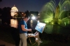 Постарался передать романтическое настроение. Фонтан Золотой колос гармонично вписан в пейзаж, подсветка прекрасно подчёркивает архитектурные особенности фонтана. Изумрудно-синяя ночь всё покрывает покрывалом, только лучи света врываются сказочными всполохами.