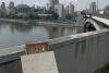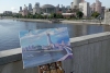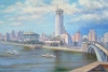 Привлёк внимание ансамбль на набережной. Давно не встречал такой гармоничной архитектуры. В утренних лучах солнца сияет крыша Дома музыки, а отель выступает как вертикальная доминанта. Ночная гроза уходит, лазурное небо отражается в реке, город просыпается, умытый и ясный. Это настроение и состояние я постарался передать. Писал со смотровой площадки на Большом Краснохолмском мосту.