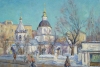 Давно хотел написать вид от консерватории на церковь Малое Вознесение. Храм сияет в лучах весеннего солнца. Тени на остатках снега подчёркивают тепло колорита. Красивый, уютный, старинный храм, построенный в стиле московского барокко. И очень необычен по ритму крыши дом причта, что за храмом по улице.