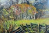 An emotional landscape of the first spring in the province. The artist conveys the moment when the earth thaws and begins to glow with green and yellow tones: a broken wooden fence in the foreground, a soft wash of the meadow, and slender birches at the foot of the mountains create a sense of depth and tranquility. The dense texture of the oil painting, energetic brushstrokes, and thoughtful chiaroscuro emphasize the freshness and fleeting nature of the spring day. The painting will be a wonderful accent for interiors in rustic, Scandinavian minimalism, or modern classic styles; suitable for collections of landscape paintings and gifts with a soulful story.