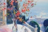 Картина Анастасии Калюжной «Весенние ароматы цветов и моря» — это гимн безмятежности и эстетике жизни. На террасе, залитой мягким утренним светом, стоит изящная ваза с цветущими ветками, чьи нежно-розовые лепестки перекликаются с легким морским бризом. Художница мастерски соединила уют домашнего чаепития с величием морской панорамы, открывающейся вдали.