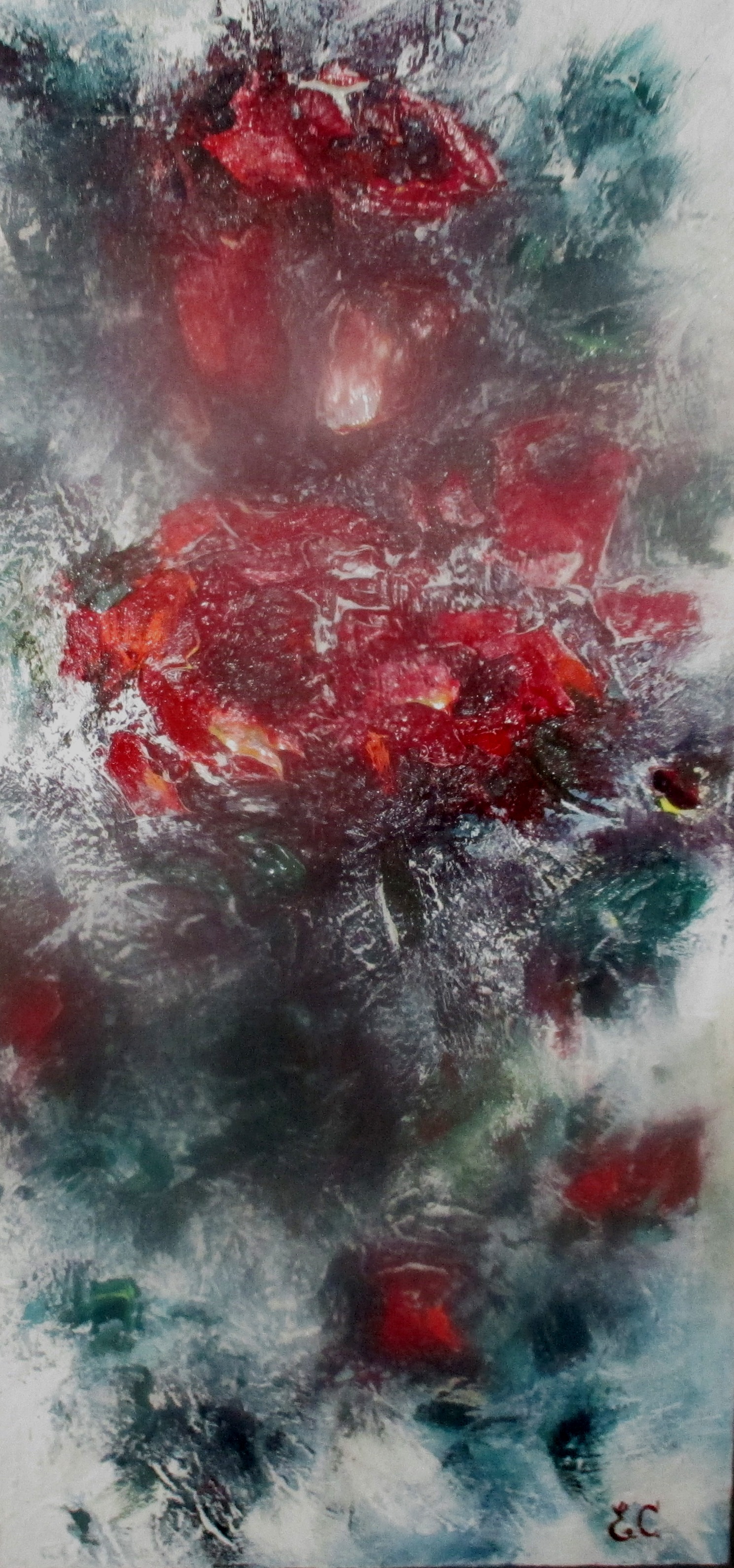 Отсутствие узнаваемых форм заставляет зрителя сосредоточиться на чистом эмоциональном воздействии цвета. Красный цвет прорывается сквозь ледяную пелену, словно сильное чувство, которое невозможно сдержать.