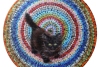 Маленький чёрный котёнок на деревенском коврике