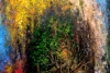 The centerpiece of the composition is a solitary yet strong tree, whose branches, like arms, reach toward the light. Its foliage is depicted in a rich dark green, creating a sense of stability amid the whirlwind of surrounding colors.