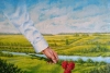Этот жест — простое, но монументальное подношение памяти. Рука, словно возникшая из небытия или с самого неба, соединяет земную красоту природы с вечностью. Контраст ярких красных цветов с умиротворяющей зеленью пейзажа создает ощущение тишины и молитвенной сосредоточенности. Абаимов мастерски передает масштаб и значимость момента, превращая частный жест в символ прощания или благодарности. Картина звучит подобно музыкальной фразе: это визуальное «адажио», медленное, торжественное и бесконечно трогательное, воспевающее жизнь и её хрупкость.