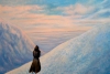 The painting by Vladimir Abaimov «Still A Long Way To Go…» is a poignant hymn to human perseverance in the face of majestic and harsh nature. The canvas depicts a solitary traveler wrapped in a dark cloak, standing on a slope covered with snow or fog.