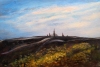 Vladimir Abaimov's painting «All Roads Lead Somewhere» is a deeply philosophical landscape filled with a sense of journey and search. On the horizon, like a mirage or the goal of a long journey, the silhouette of a distant city with soaring spires emerges. The dark textured earth in the foreground contrasts with the wide bright sky, creating a dramatic effect of overcoming.